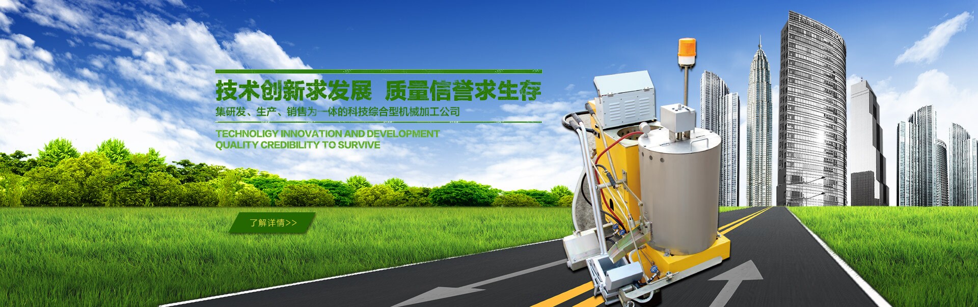 公司自成立以來,秉持市場(chǎng)需求為導(dǎo)向,技術(shù)創(chuàng)新為基礎(chǔ),質(zhì)量信譽(yù)為主的原則,成功開發(fā)出標(biāo)線施工機(jī)械、融雪劑撒布機(jī)、道路清掃機(jī)等一系列全新的作業(yè)機(jī)械并獲得多項(xiàng)國家專利。“誠信立足,創(chuàng)新致遠(yuǎn)”的企業(yè)理念,分別于2009年、2011年為我公司贏得了“全國質(zhì)量誠信AAA級(jí)品牌企業(yè)”和”全國十佳誠信單位”的光榮稱號(hào)。2013年,我公司在自主研發(fā)創(chuàng)新產(chǎn)品的道路上邁出了重要的一步,被山西省新技術(shù)推廣中心評(píng)定為20 14年新技術(shù)重點(diǎn)推廣單位。